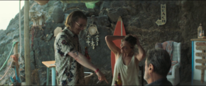 Ryan is funny because he is an extremely dangerous character in a claustrophobic thriller who masquerades as a seemingly normal bloke who makes trivial chit chat, almost like a Quentin Tarantino character but very British. For this to be funny it needs the presence of Ian McShane (my teenage crush when he was roguish antique dealer Lovejoy) as Wilson with his dead pan expression, he’s like the straight guy to Ryan’s funny guy. Wilson is so simmeringly angry “stay in the south Ryan”, whilst Ryan is lolling about by the pool on a sun lounger (even though it went dark hours ago), flippantly gobbing off, sucking on his fag, waving his arms around, supping his beer, quoting from a Bette Midler song then sorting his Mum out with the TV settings. This is a classic example of a scene being simultaneously humorous and tense with an underlying sense of foreboding. Director Gonzalo Lopez-Gallego credits Adam with bringing his own interpretation to the character of Ryan, it’s a great performance. Poor Gloria though- I just hope for her sake that it was the best one night stand ever. Come on Ryan- behave! The British on holiday abroad have already got a bad reputation!