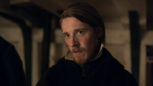 What is really amusing though is how every time he locks horns with Crozier, Hickey responds to authority and chastisement like an arrogant schoolboy called up in front of the head master. The interrogation scene following Lady Silence’s abduction is an absolute peach. He starts off proudly explaining his working out, but realising this isn’t going as well as he hoped he starts smirking, answering back and ultimately losing his temper. I absolutely love the moment when he pushes his tongue in his cheek when he realises he’s getting more than lines- a nasty little boy with defiance written all over his face. Later, having been so naughty that he is back in front of teacher, this time with a noose round his neck and facing execution, he is smirking again, eyeball rolling, and doing impressions. I can’t help but admire his nerve.
